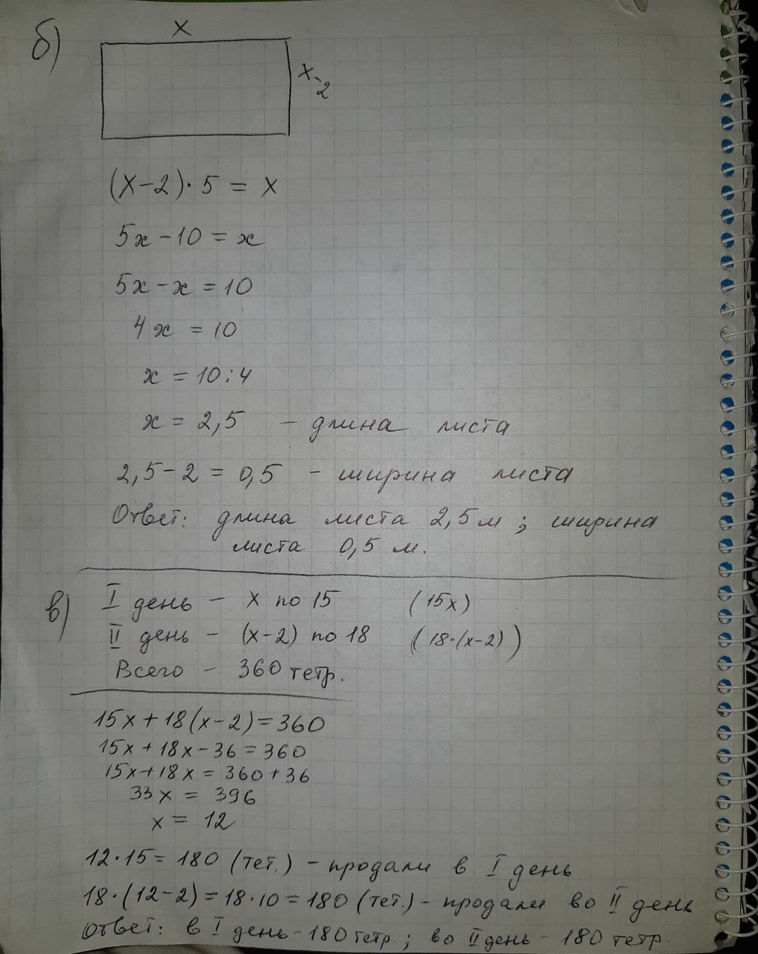 18 * (х - 2) - столько тетрадей продали во второй день