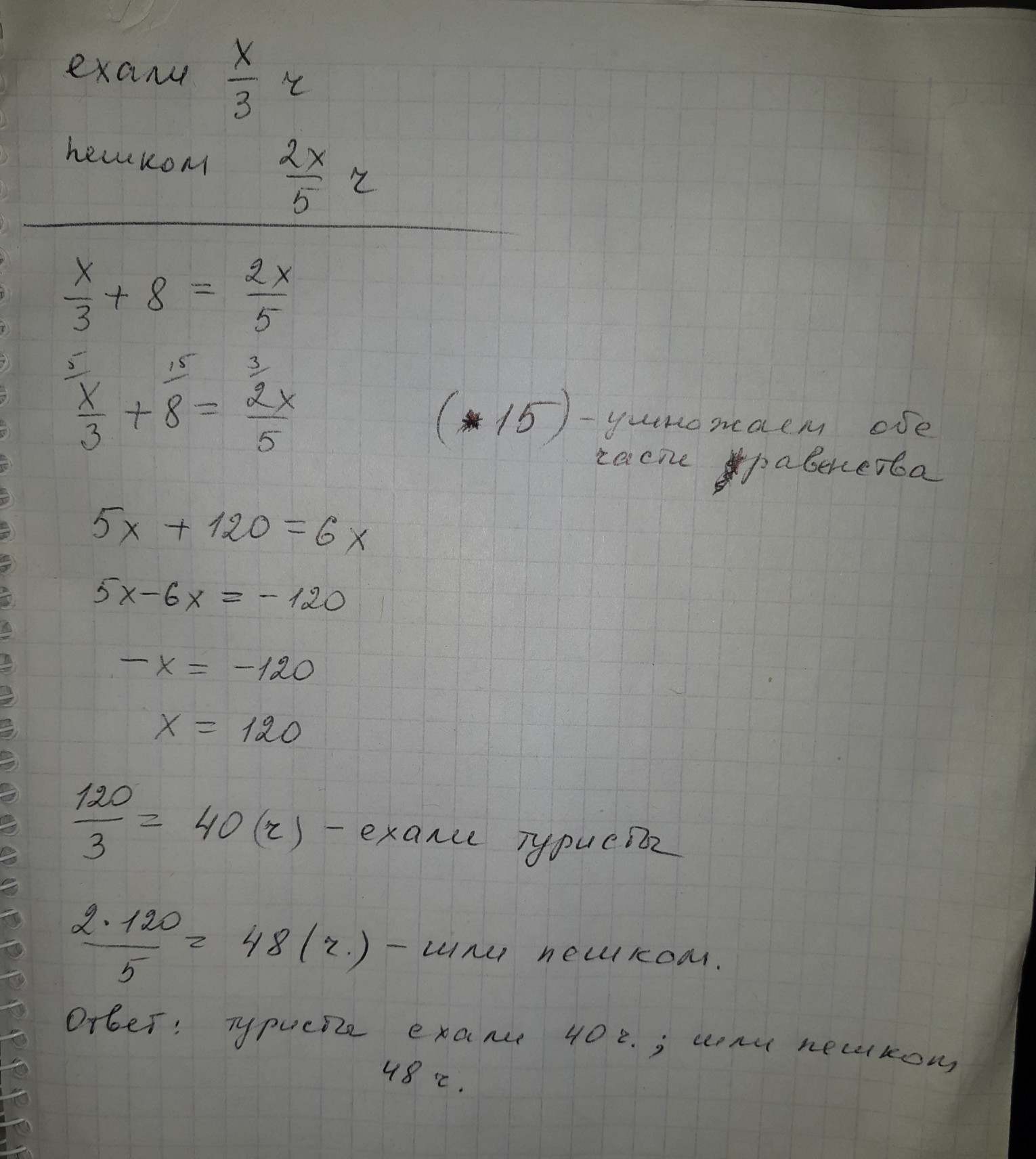 а) если на путь пешком они затратили на 8 часов больше, то его и ставим на первое место. Составляем уравнение