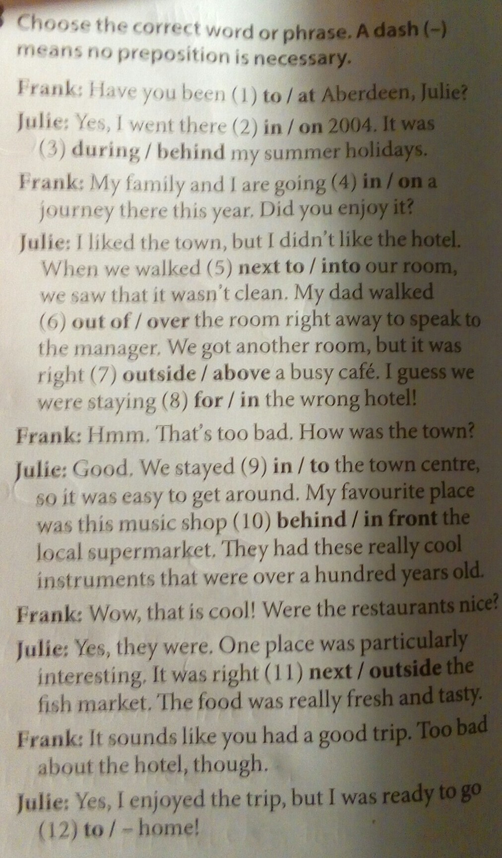 Choose the correct word or phrase. A dash (-) means no preposition is necessary. СРОЧНО!!! ПОЖАЛУЙСТА!!!