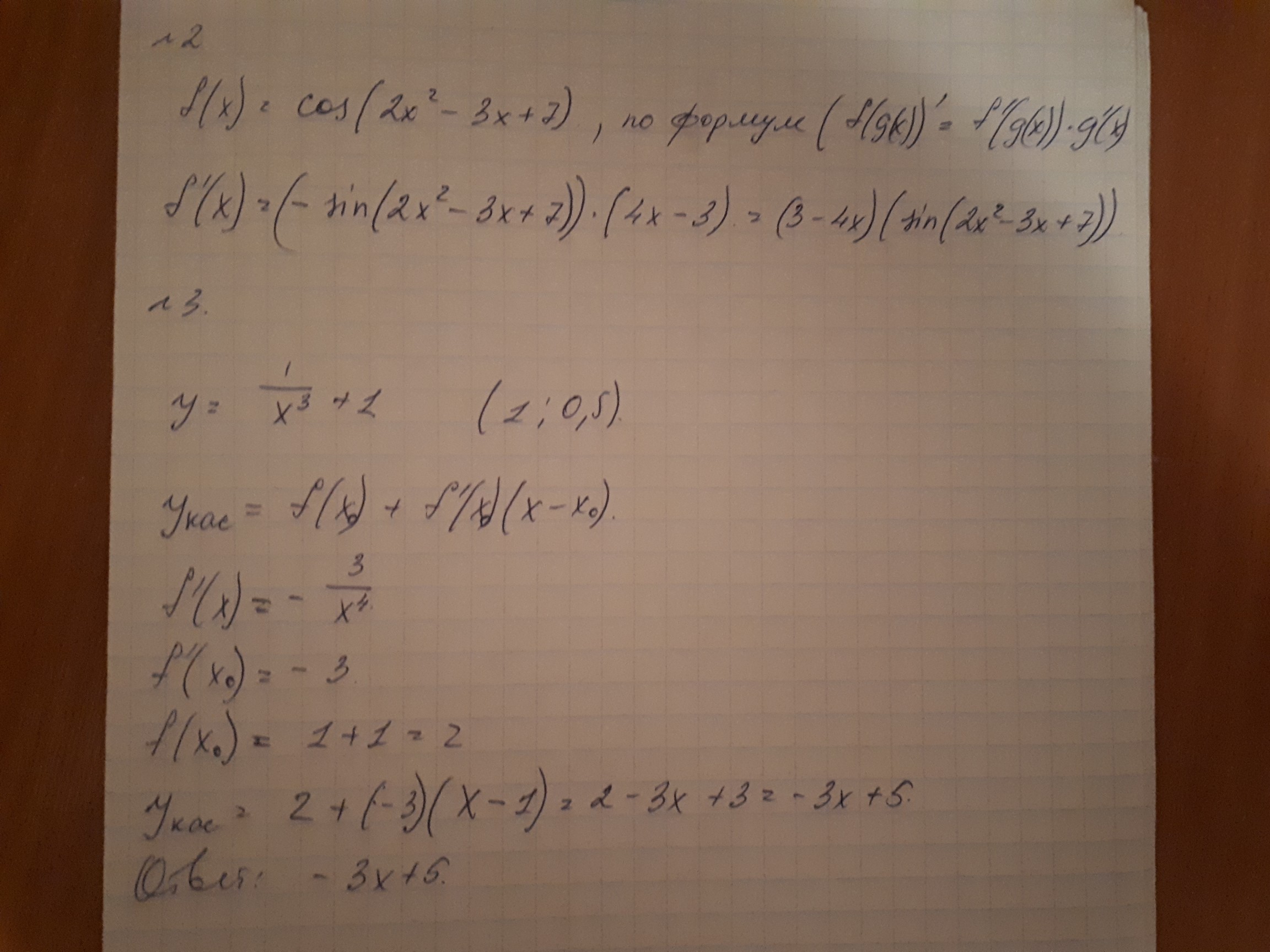 2. Вычислить производную (d/dx)cos(2x^2-3x+7)