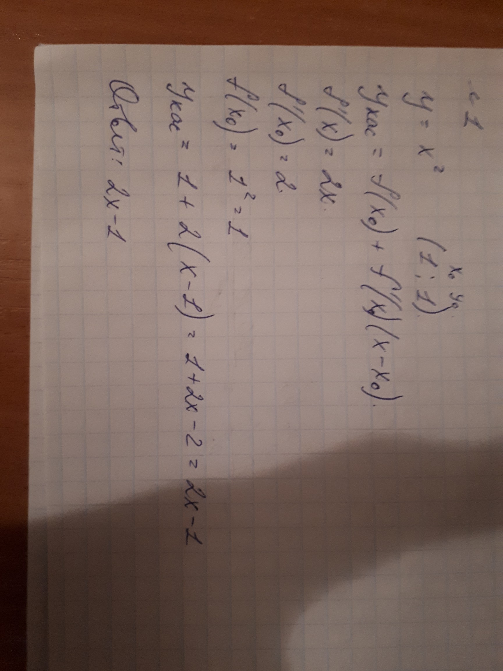 1. Составить уравнение касательной к графику функции y=x^2 в точке (1;1).
