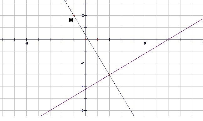 Теперь решаем систему из этих уравнений: у=3/5 х -4,2 и у= -5/3 х +1/3.