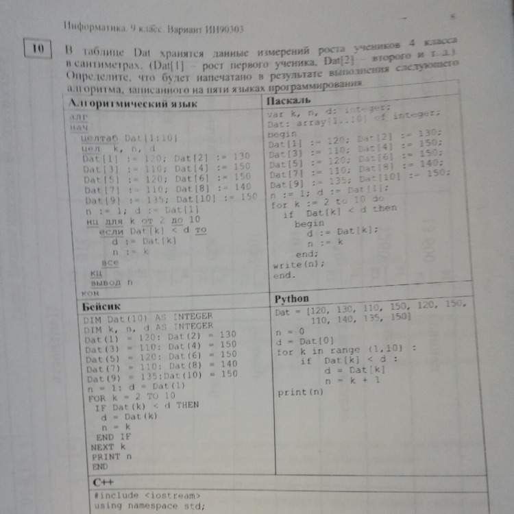 А вы говорите, что ответ 4,но ведь Dat[4]:=150, а 150>120, что не подходит по условию...