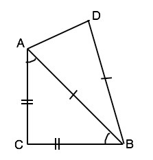 равнобедренный треугольник АВС с прямым углом С и равнобедренный треугольник АВD (АВ=BD) имеют равные площади. Найти угол ADB