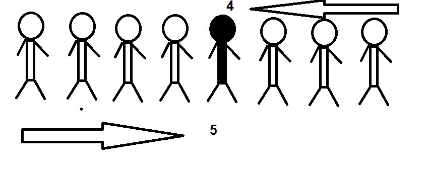 Тому що він спочатку 5 після нього стоїть ще 3 учня. Якщо ми порахуємл з кінця тоді він буде 4.