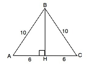 Вариант решения. В треугльнике АВС (АВ=ВС) высота ВН по свойству равнобедренного треугольника является и медианой. АН=СН=6. Из прямоугольного ∆ АВН по т.Пифагора ВН=√(AB²-AH²)=√64=8 (ед. длины).