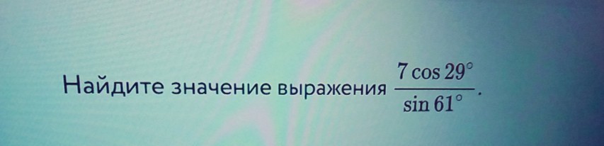 frac{7 cos(29 {}^{ {}^{.} }) }{sin(61 {}^{ {}^{.} } )}  =  frac{7cos(29 {}^{ {}^{.} }) }{cos(90 - 29)}  = 7