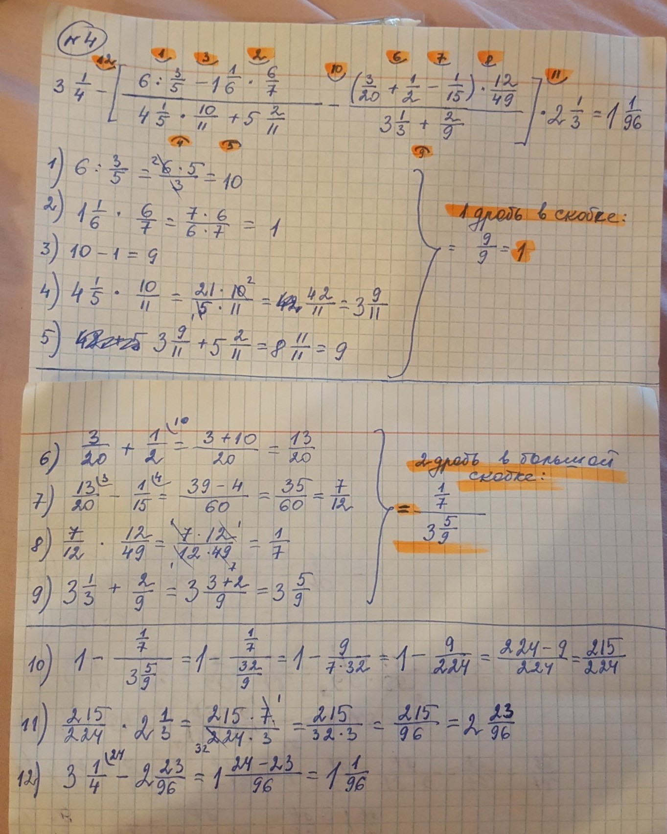 9) 13/4 – 215/96 = 13*24/4*24 – 215/96 = 312/96 – 215/96 = 97/96 = 1 1/96 - ответ