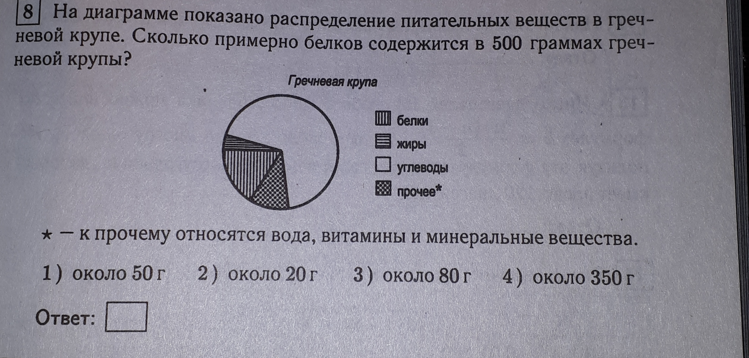 Но белки занимают большую часть оставшейся четверти круга, по этому ответ №1, 2 не подходят (125/2 = 62.5, а у нас и того больше этого)