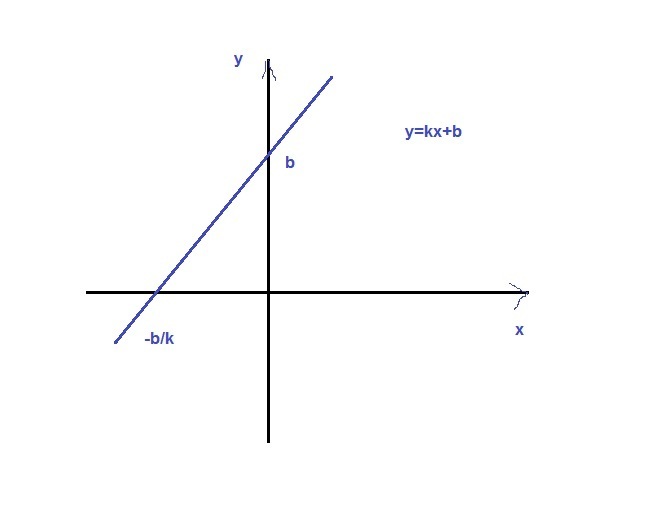 найдем другой катет при у=0 ; kx+b=0 x=-b/k длину катета берем по модулю = b/k