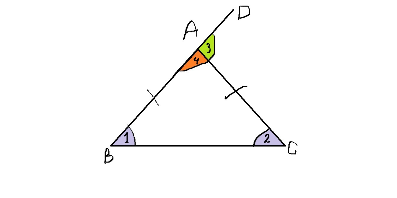 ΔАВС - равнобедренный (АВ=АС) ⇒ ∠1=∠2