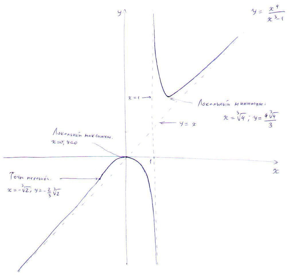 При переходе через x=-2^(1/3) f''(x) меняет знак => x=-2^(1/3) является точкой перегиба; y=-2*2^(1/3)
