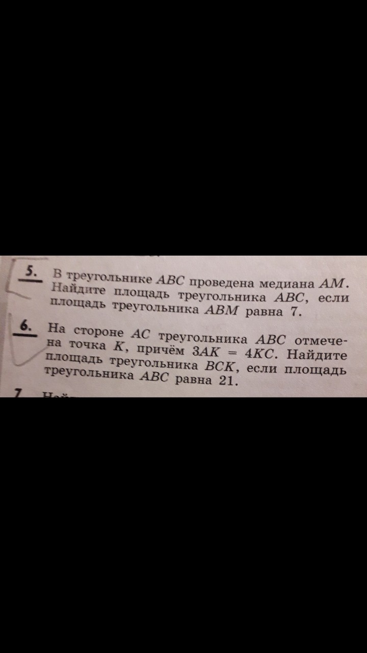 следовательно,плошадь ABC>площади BKC в 1целую3/4 раза,значит площадь BKC=21÷1целую3/4=9