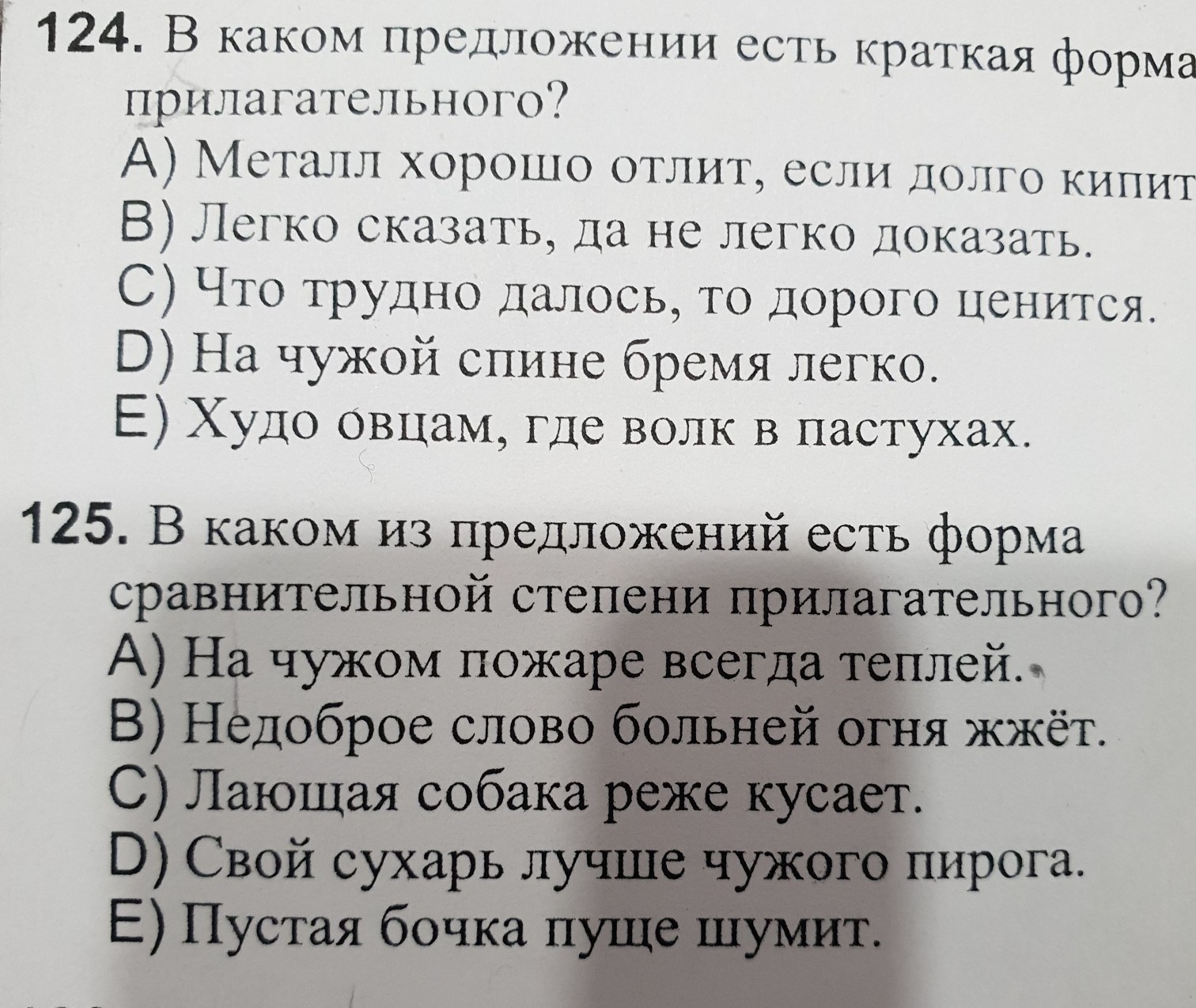 124) Ответ: D, краткое прилагательное - легко (каково?)