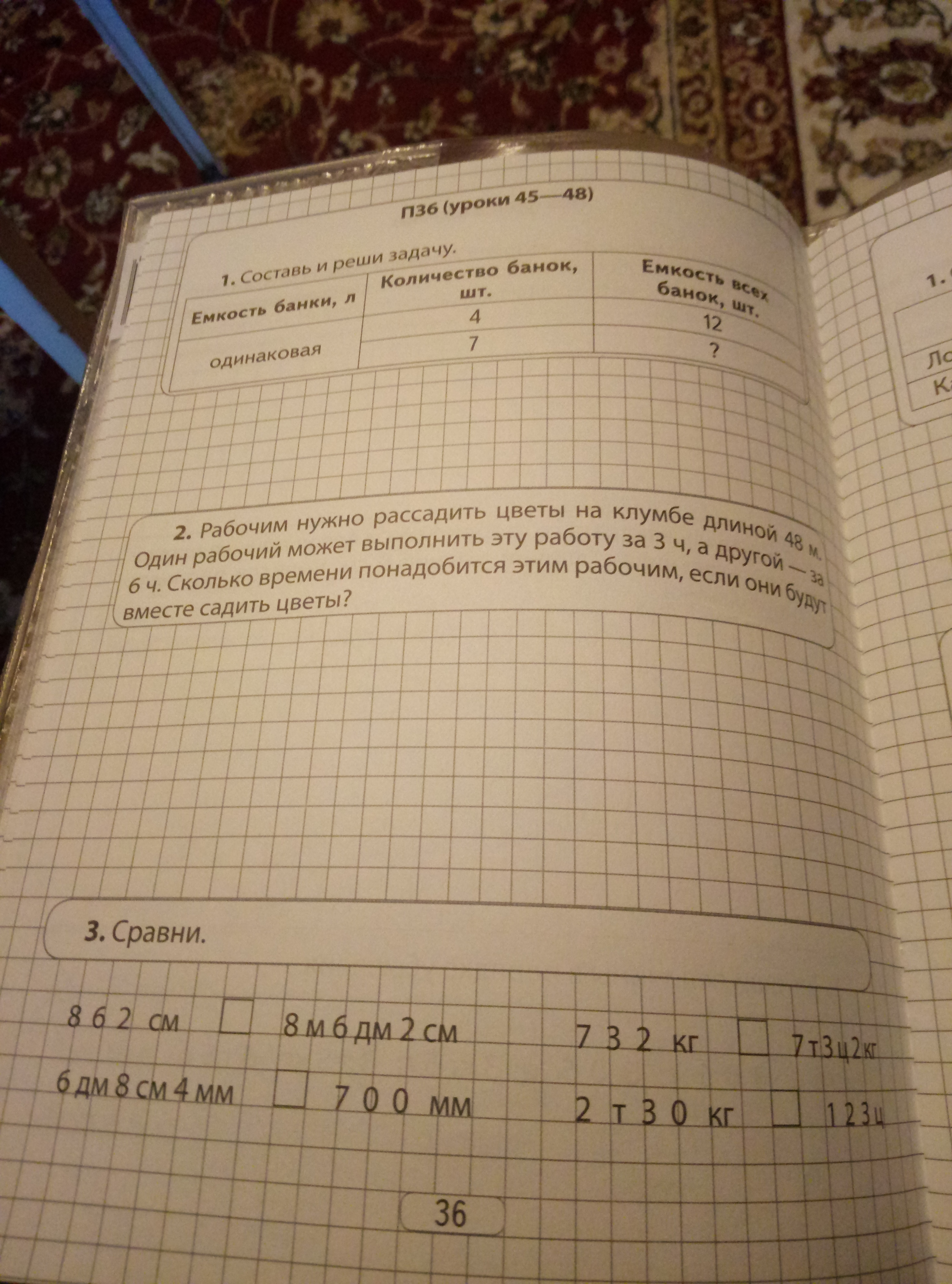 1. На двух столах стоят банки с одинаковой емкостью. На первом столе стоит 4 банки с общей емкостью 12 л. На втором столе стоит 7 банок. Определите общую емкостью всех банок, стоящих на втором столе.