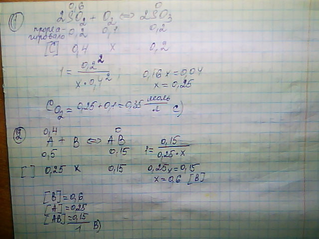 ....................................... Решаем через константу равновесия, равновесные концентрации неизвестных веществ обозначаем через х