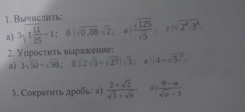 б) 9-a/Va-3= 9-(Va)^2 /-3-Va=(3-Va)(3+Va)/ -(3-Va)=-3-Va