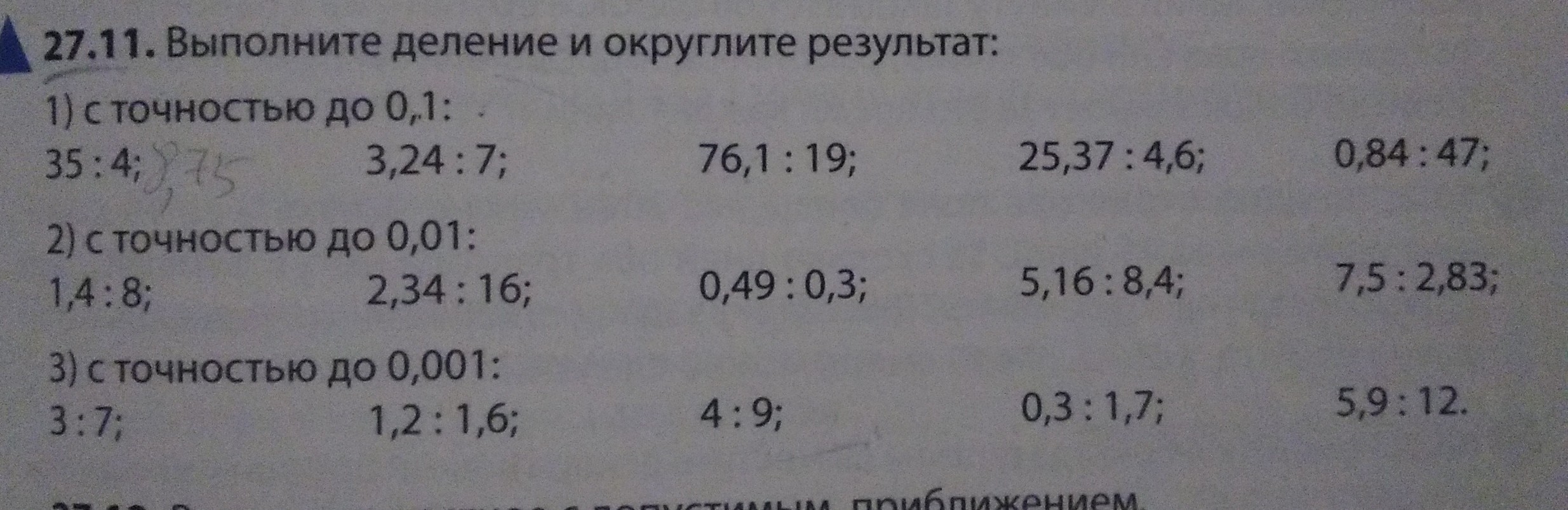1) 35:4=8,8 3,24:7=0,5 76,1:19=4,0 25,37:4,6=5,6 0,84:47=0,0 (т.к. число выходит 0,01787234042)