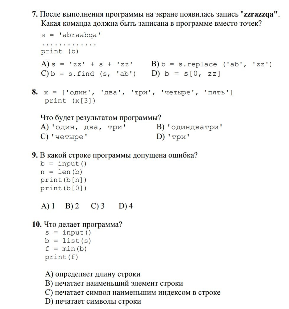 Очевидно, что задание на замену подстрок (например, какая-то часть строки), поскольку в оригинальной записи все подстроки "ab" заменились на "zz". Не думаю, что нужно обладать знаниями программиста, чтобы понять, что "замена" по-английски - replace, а Python - язык высокого качества (там не будут функцию замены называть как dsdbhfjksdkjsdfkj, допустим). Объяснение каждой записи здесь излишне.