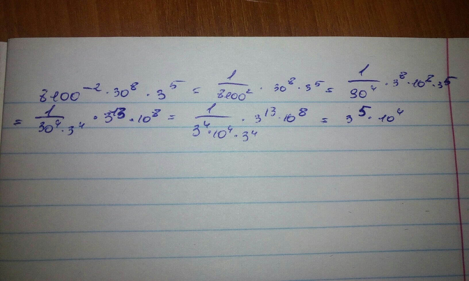8100^(-2)*30^8*3^5 = (2*3*5)^8*3^5/(3^4*2^2*5^2)^2 =