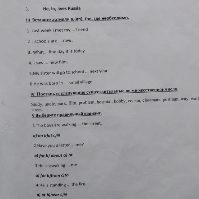 1. c) in 2. a) for 3. c) to 4. b) near