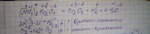 Дана реакція відноситься до внутрішньомолекулярних окисно-відновних реакцій так як окисник(Cr⁺³) та відновник(N⁻³) різні атоми та знаходяться в одній молекулі (NH₄)₂Cr₂O₇)