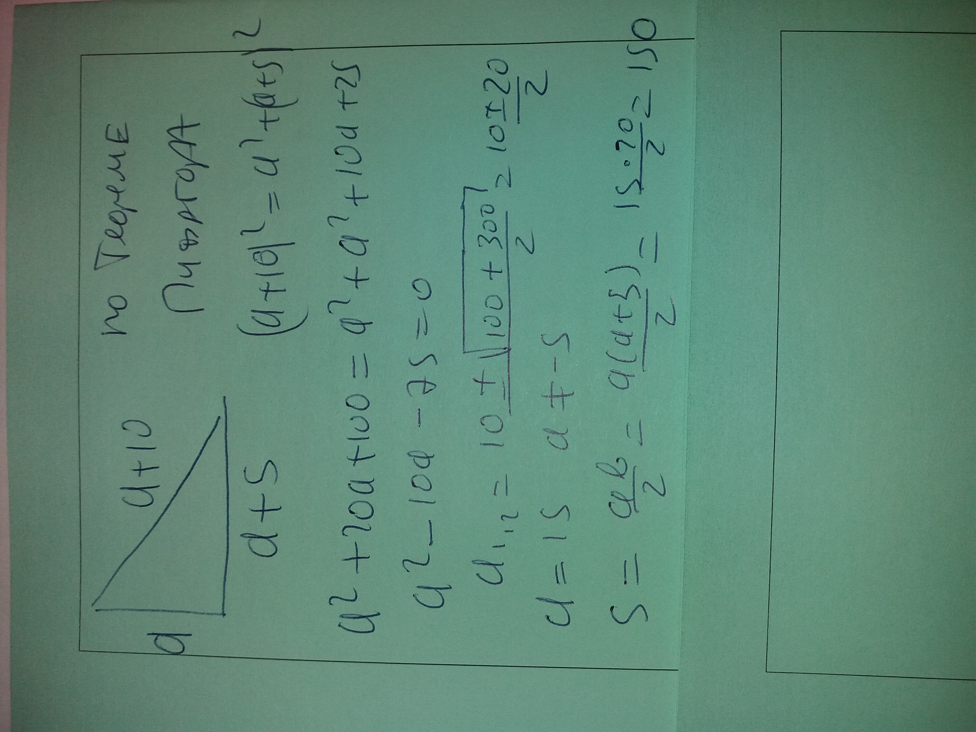 длина строн прямоугольного треугольника образует арифметическую прогруссию с разностью d=5. найдите площадь треугольника.