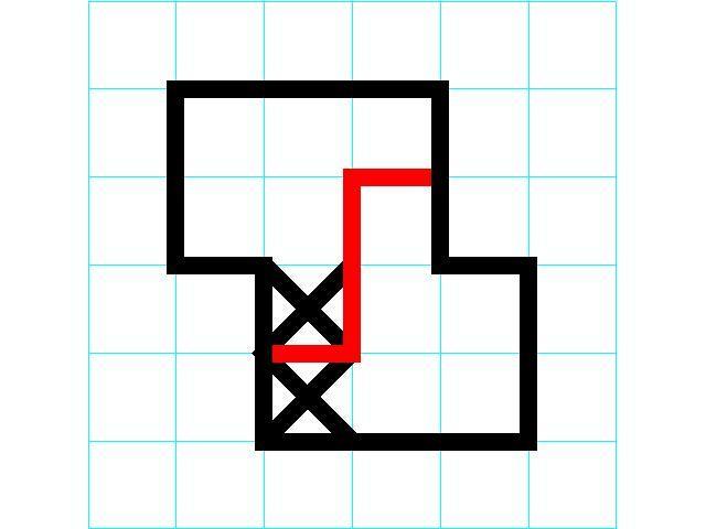Найди периметр этой фигуры если сторона одной клетки 1 см.Раздели фигуру по границам клеток на две одинаковые части так,чтобы в каждой части было по одной отмеченной клетке.
