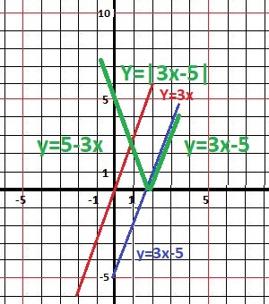Последовательное преобразование графиков приводит к двум участкам: y = 5-3x y = 3x+5