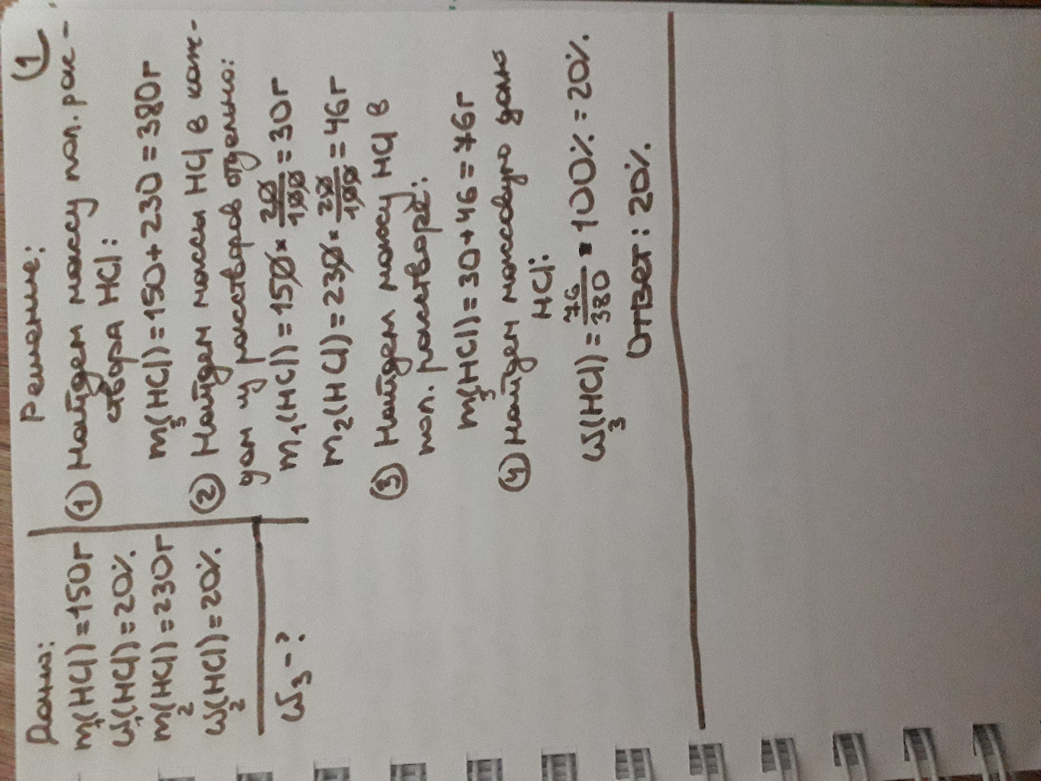 w(HCl) = 76/(230+150) = 0.2 = 20%