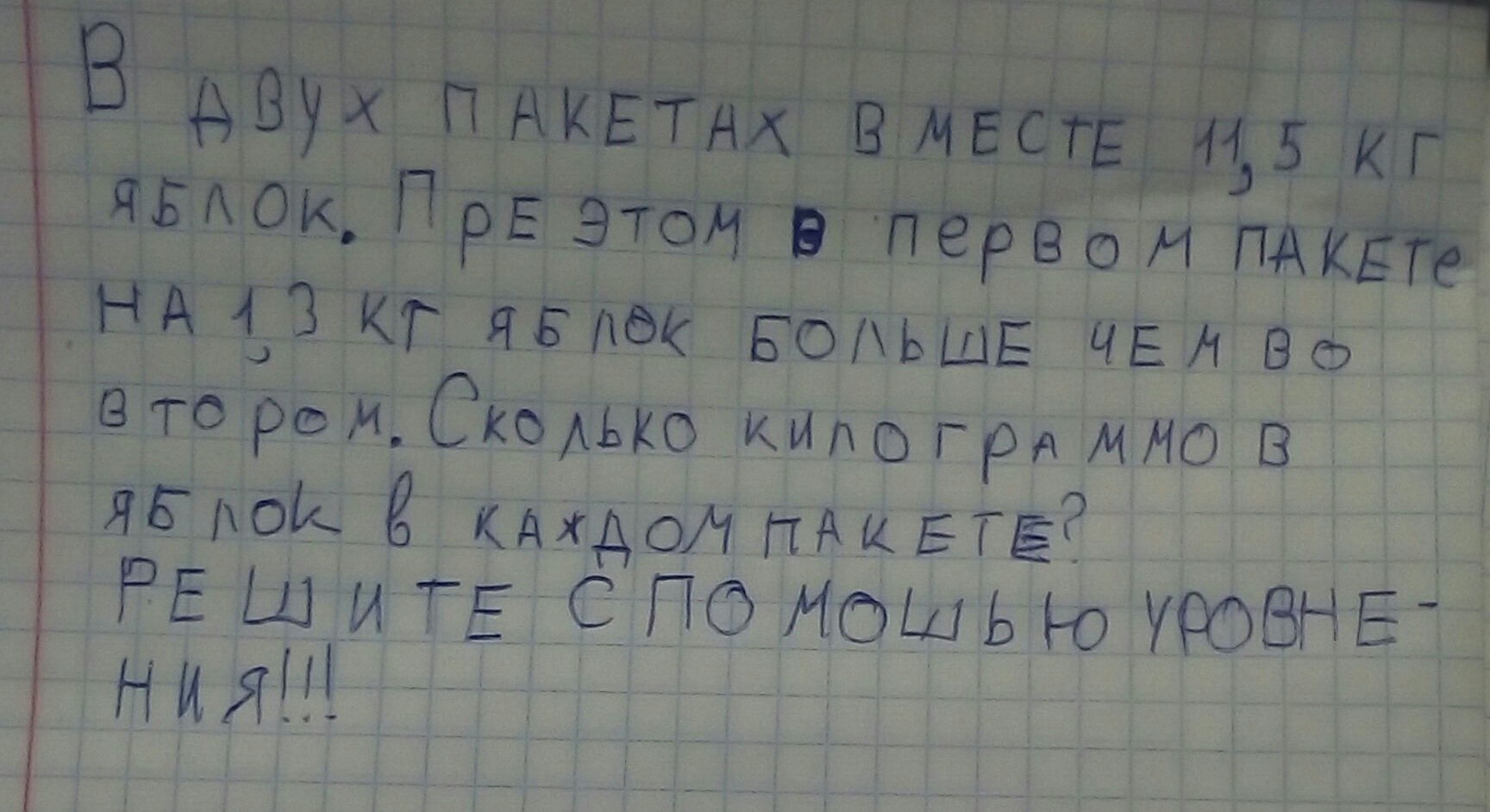 Т.к. в двух пакетах 11,5 кг, то мы можем составить уравнение.