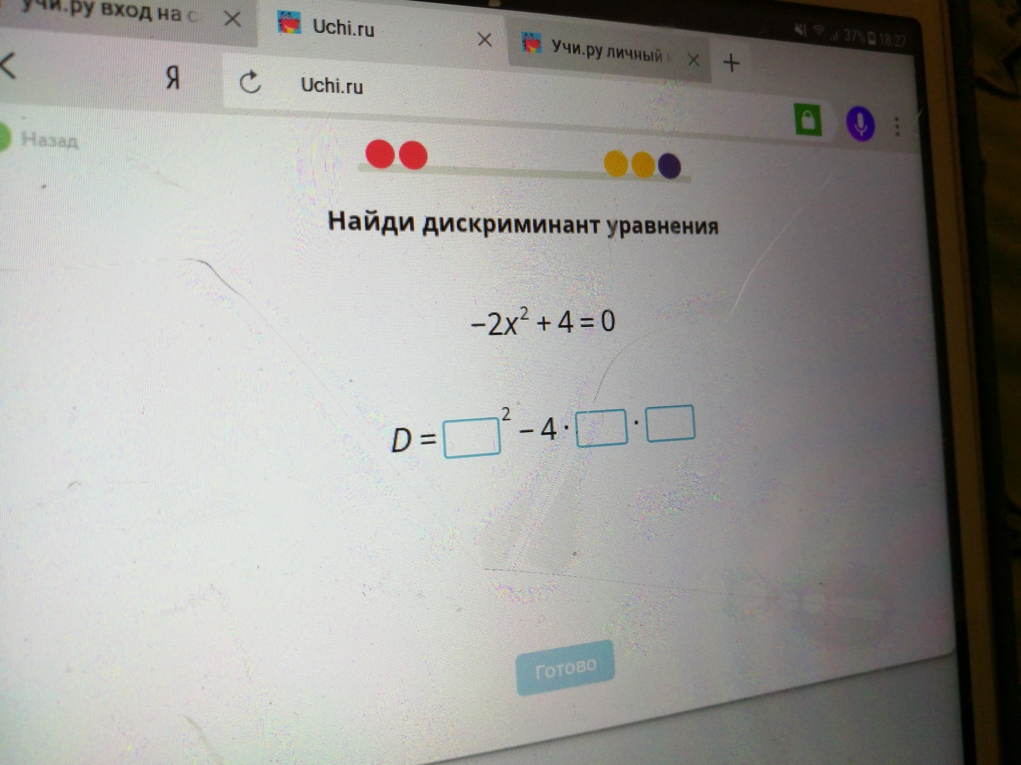 D = 0^2-4*-2*4