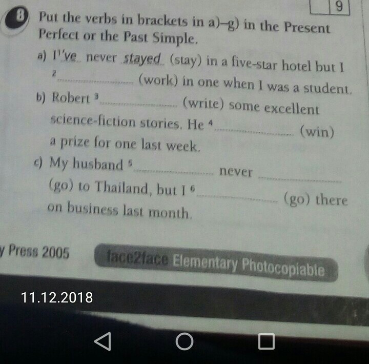 b)• has written ( present perfect, т.к. не интересует время исполнения, а только результат ).