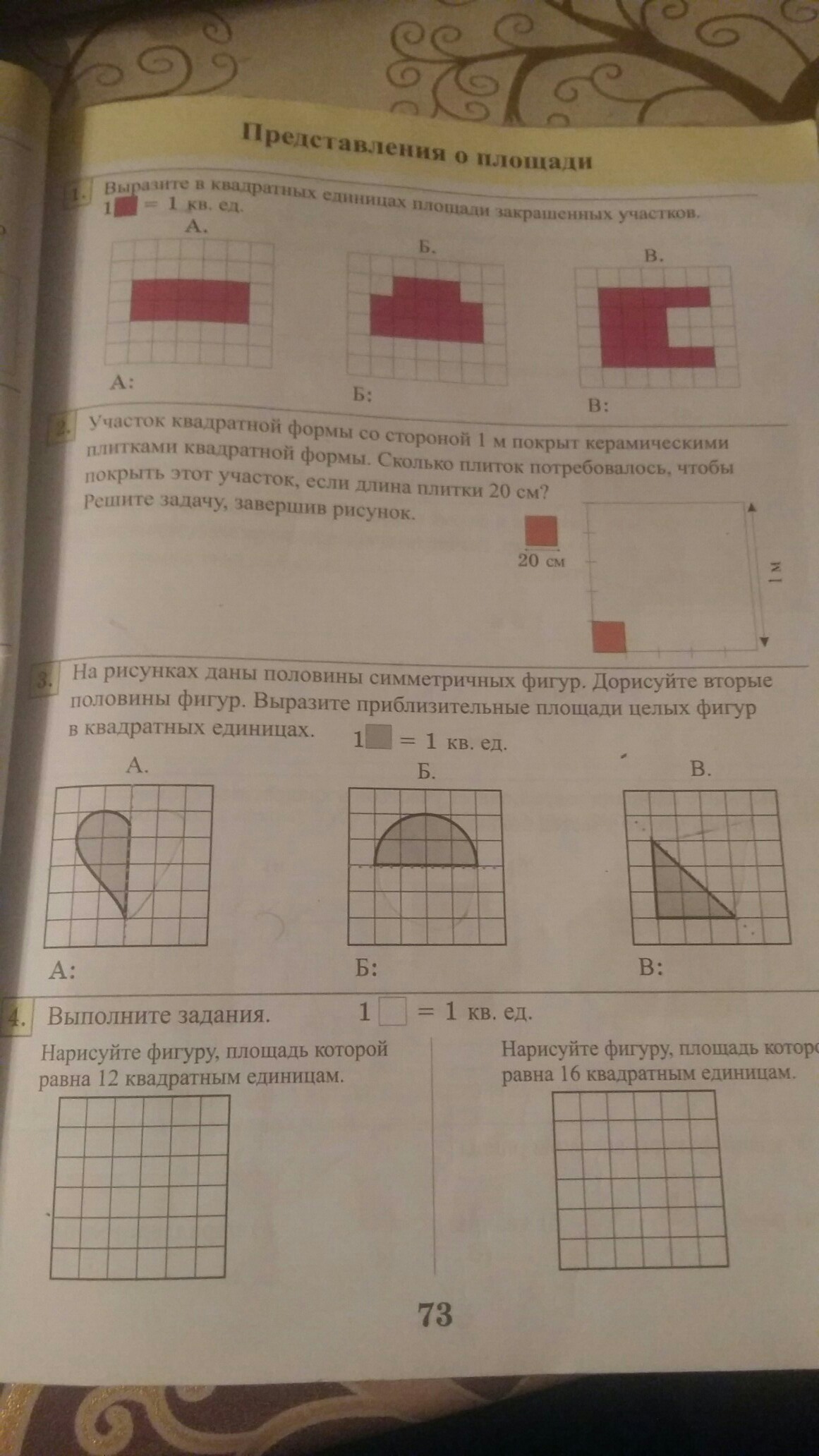 3. В третьем на рисунках просто отобразить симметрично по клетках и почитать закрашенные клетки ( вместе с нарисоваными вами)