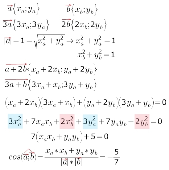 условие перпендикулярности векторов--равенство нулю их скалярного произведения; скалярное произведение векторов=сумме произведений соответствующих координат...