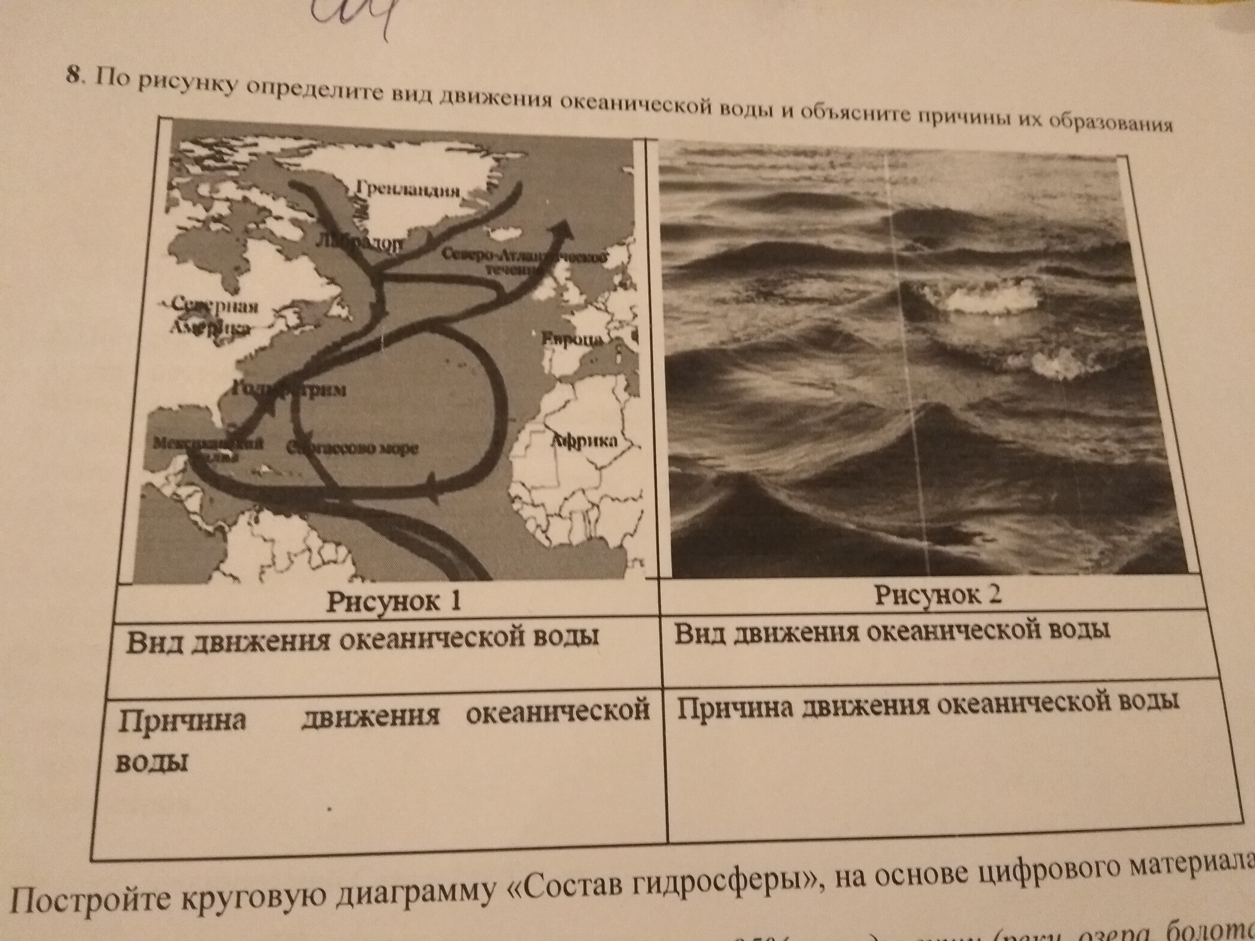 По рисунку отпределите вид движения океанической воды и объясните причины их образования.
