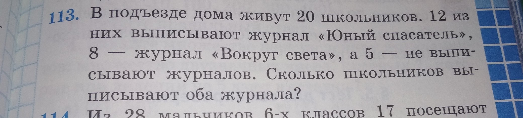 Пошаговое объяснение:1) 20-5=15 детей выписывают журналы.2) 12+8=20 журналов выписывают 3)20-15=5 детей выписывают по 2 журнала. Ответ: 5 детей