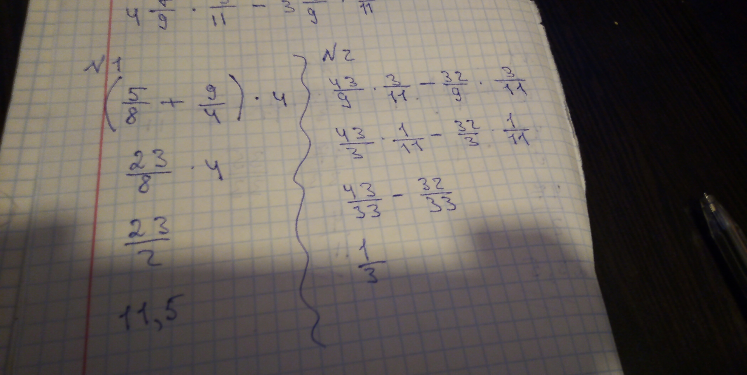 Б) 4 7/9 × 3/11 - 3 5/9×3/11=