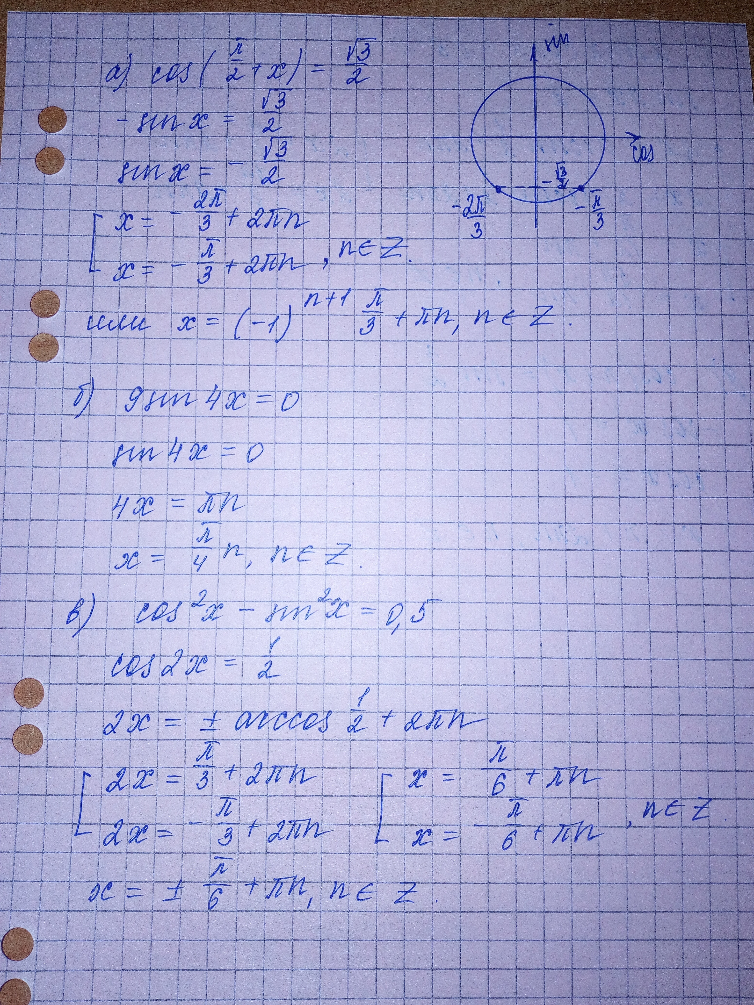 в) cos(квадрат)x-sin(квадрат)x=0,5