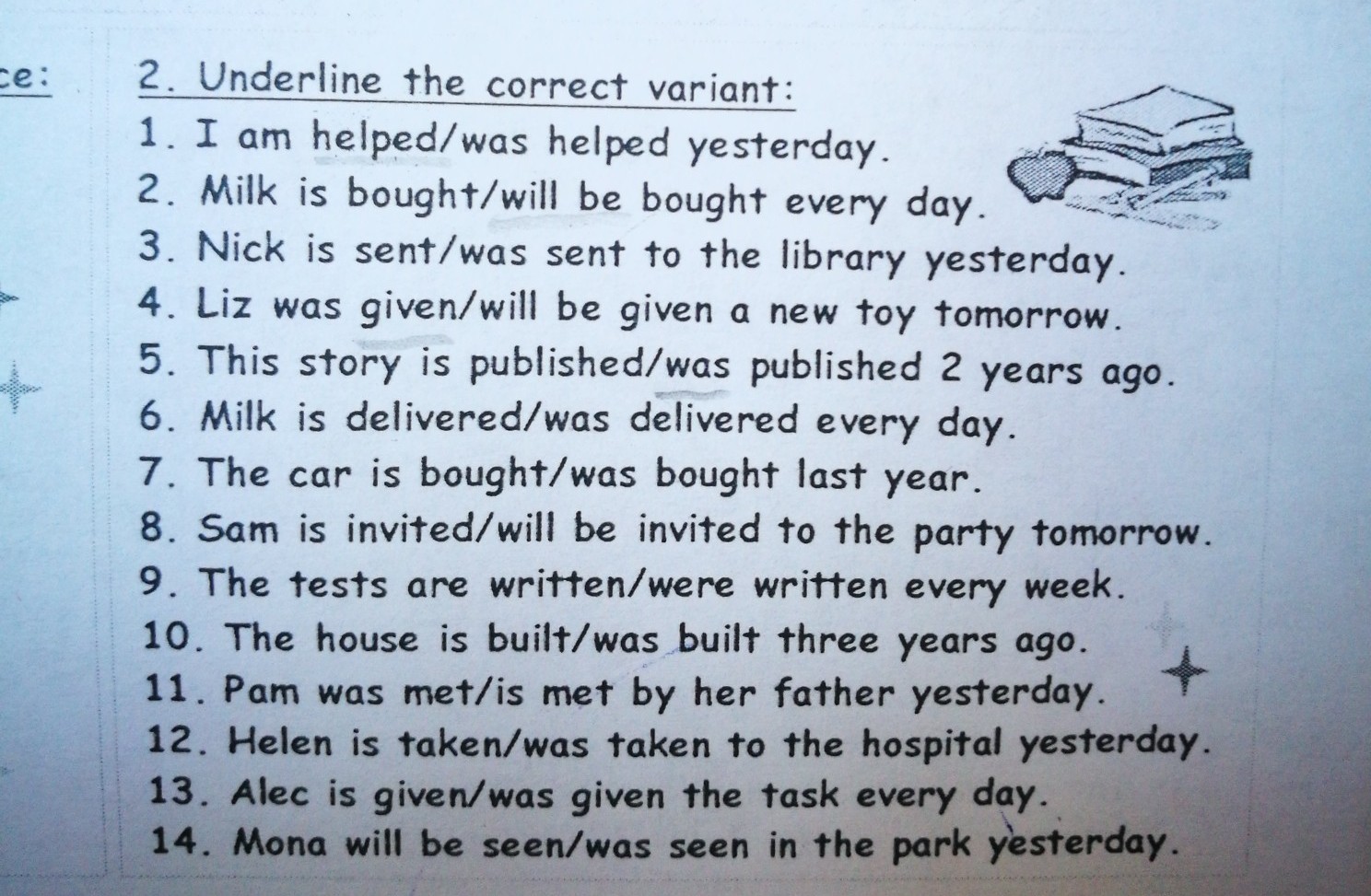 Все предложения в простом пассивном залоге (Passive Voice Simple), который образуется с помощью глагола to be в соответствующем времени, лице и числе и так называемой третьей формы глаголы (причастие прошедшего времени Participle II значимого глагола).