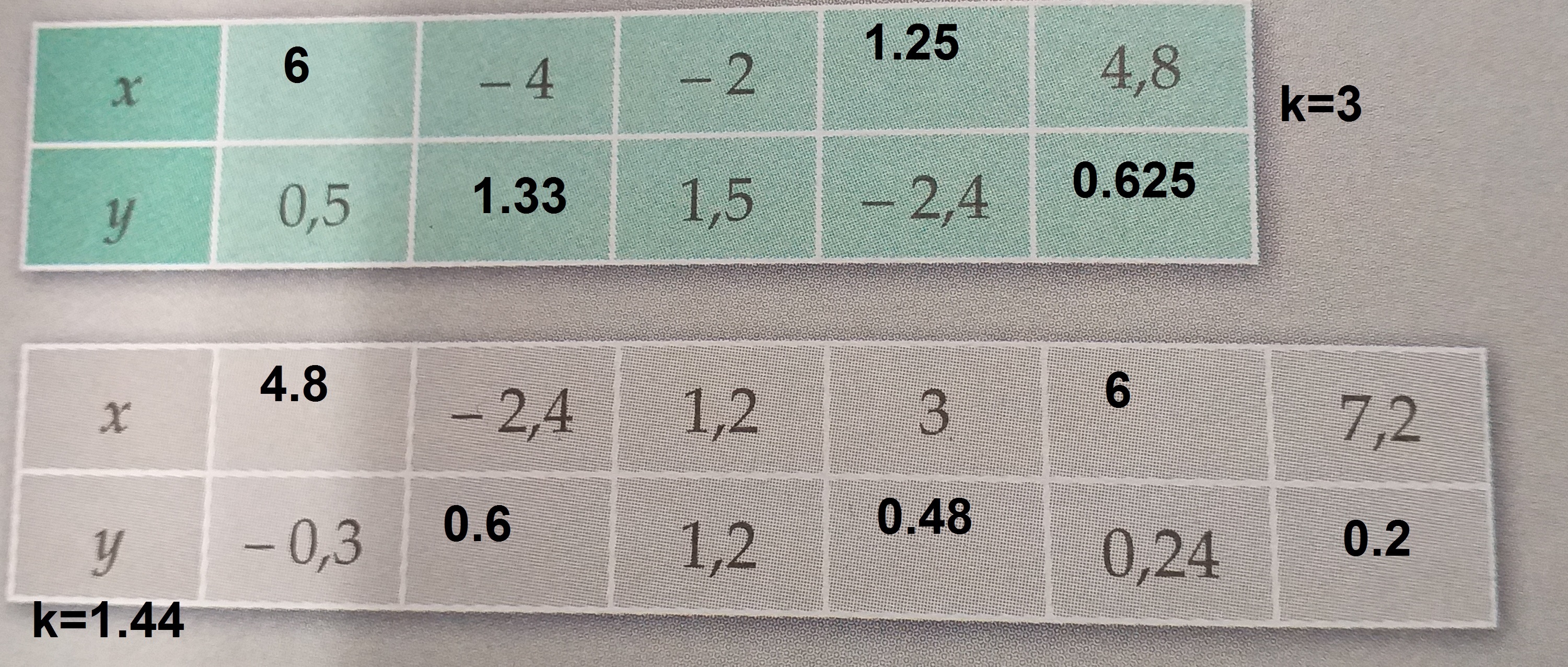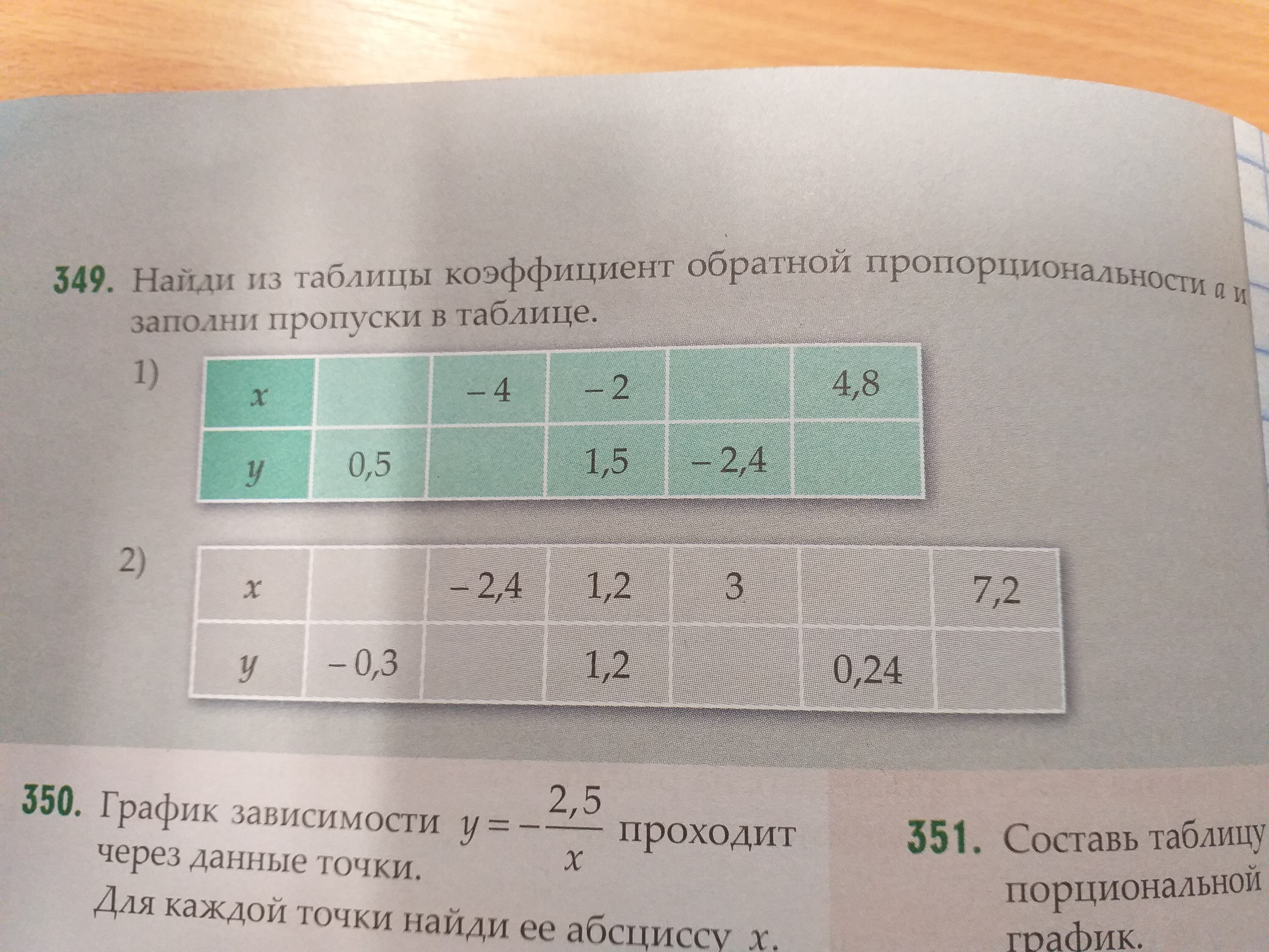 Надо найти коэффицент обратно пропорциональности и заполнить таблицу, найти коэффицент то я нашел а вот с таблицей я ничего не понимаю, помогите пожалуйста.