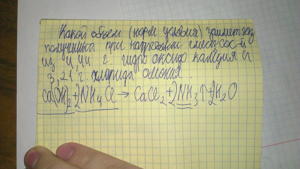 Какой объем ( нормальные условия )Какой объем ( нормальные условия ) займет газ полученный при нагревании смеси состоящей из 4.44 г. гидро оксида кальция и 3.21 г . Хлорида омония Ca(OH)2+2HN4CL--->CaCl2+2HN3Стрелка вверх типо газ или остаток +2H20