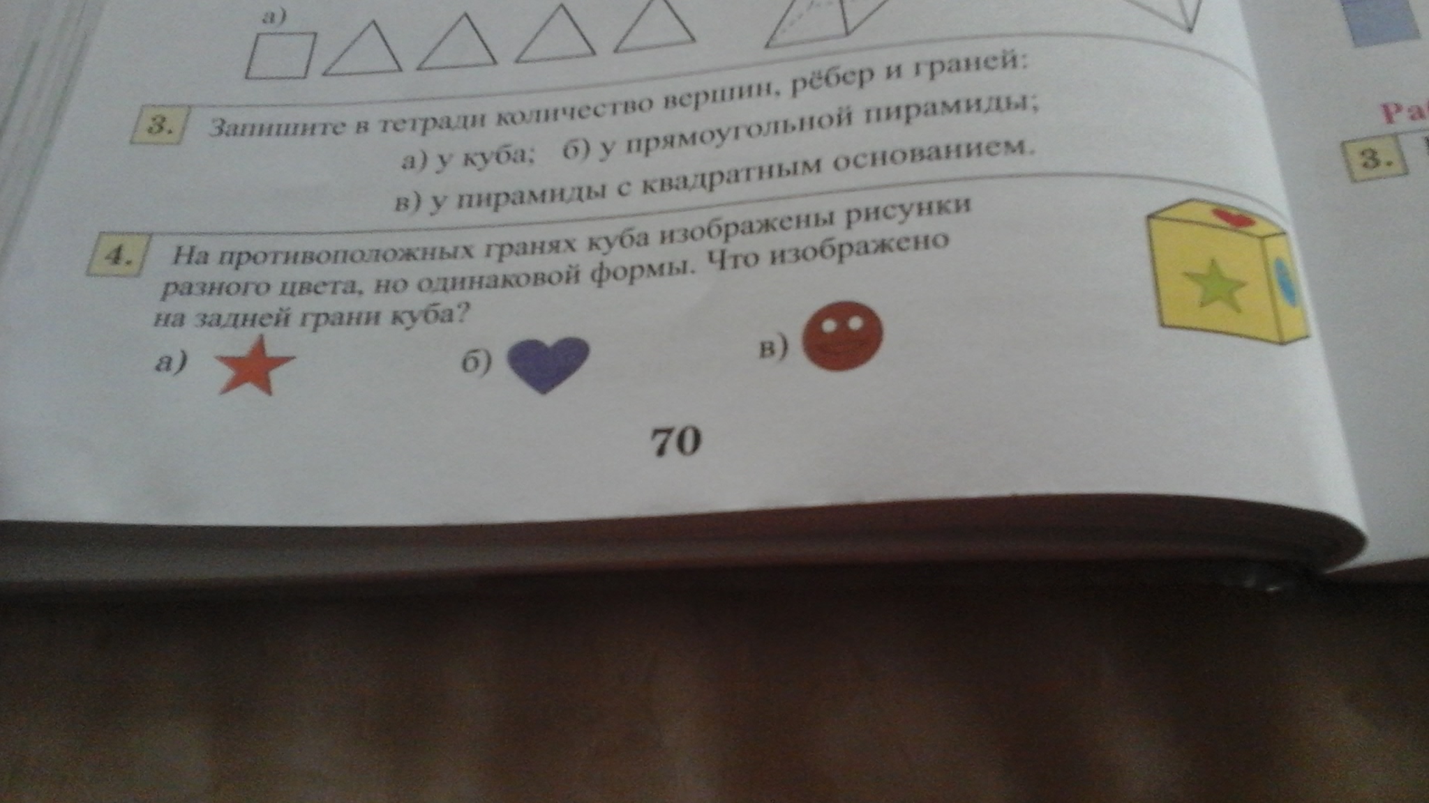 3) вершин у куба ----8 ребер ---12 граней---6
