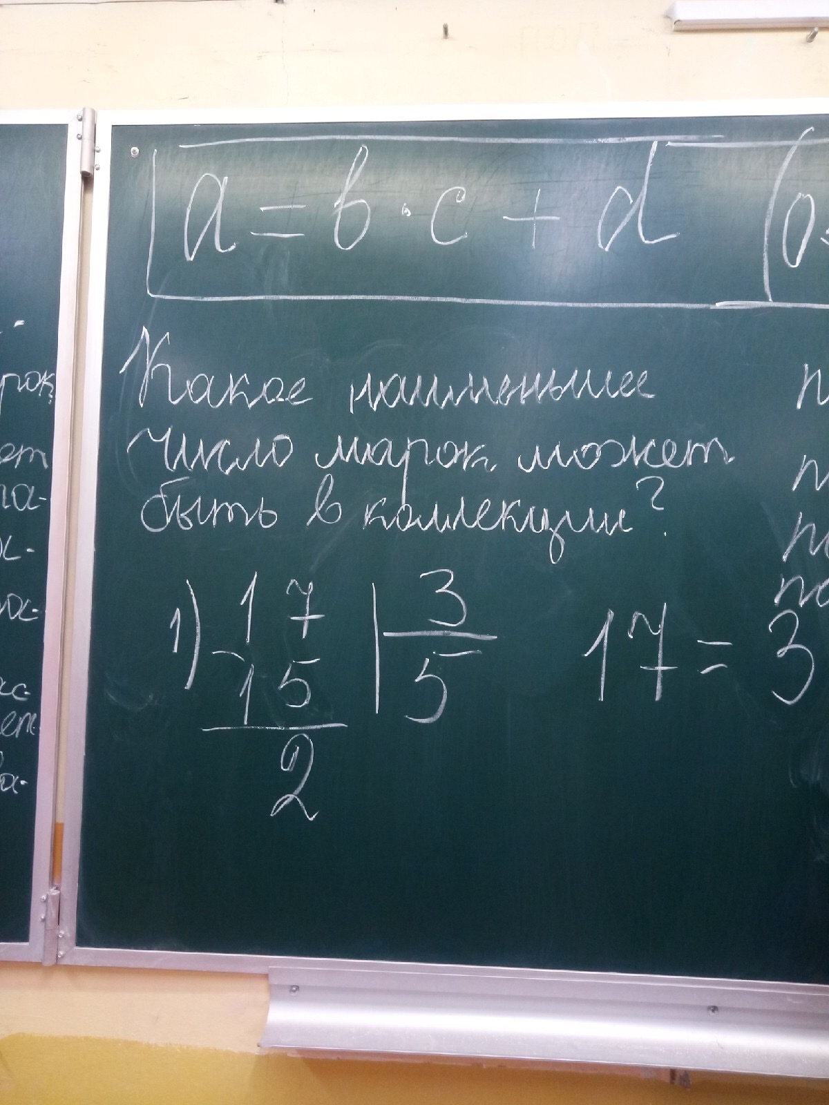 210-1=209 марок наименьшее число может быть в коллекции, т.к. если добавить 1 марку, то раскладывание было бы без остатка.