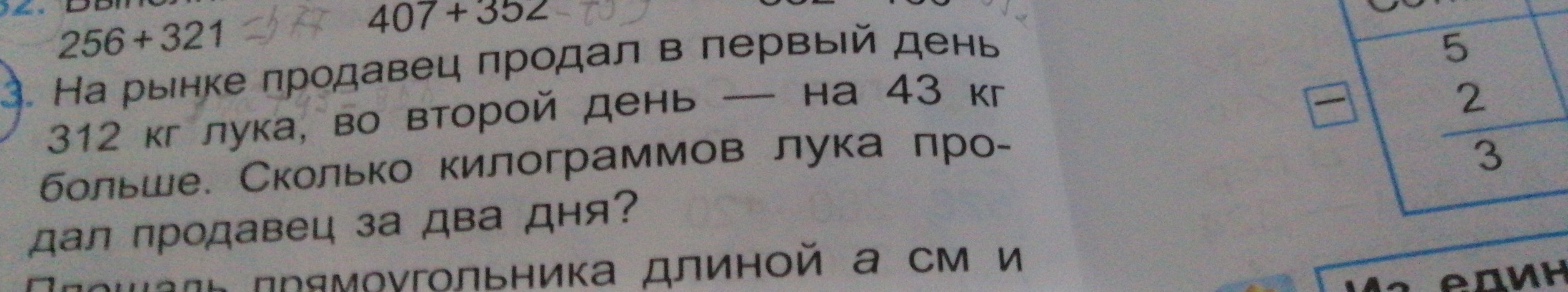 1) 312 + 43 = 355 (кг) - продано за второй день.