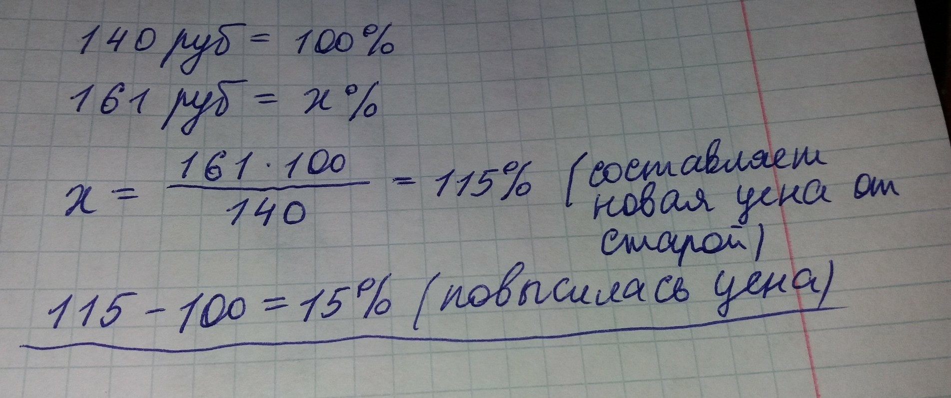 Цена товара повыселась со 140р. до 161р.На сколько процентов повыселась цена товара(краткая запись)