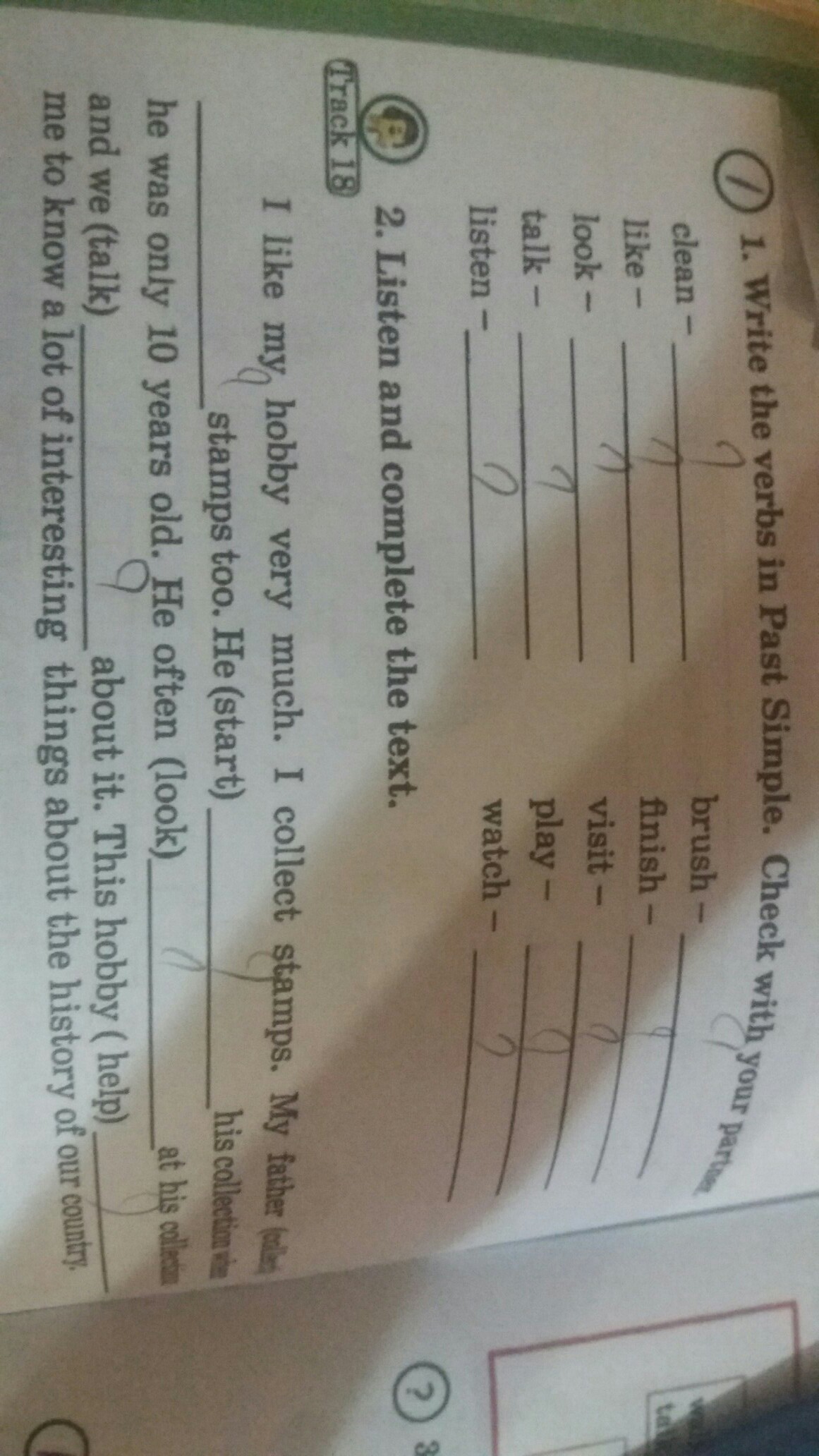 Cleaned, liked, looked ,talked, listened , brushed , finished ,visited,played , watched