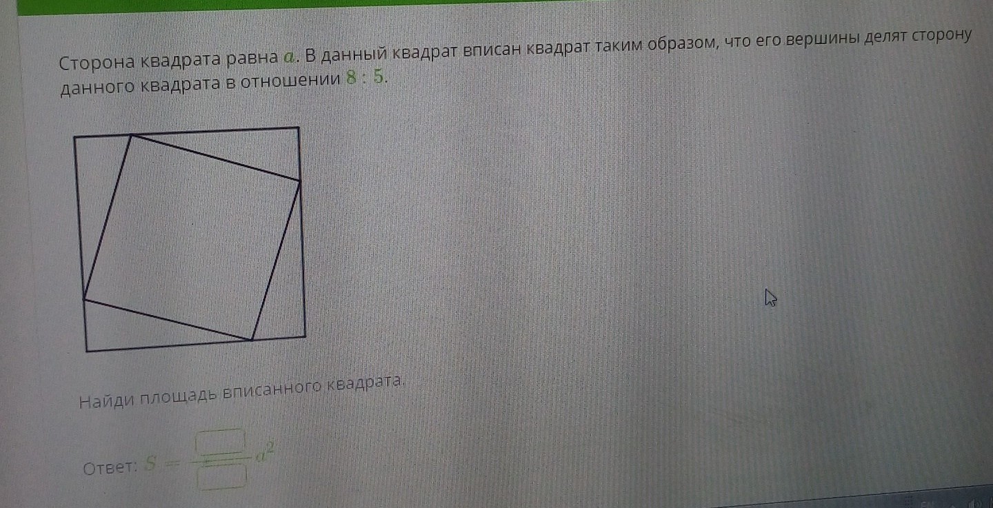 Найдем сторону малого ( из прямоуг треугольника с катетами 8 и 5)