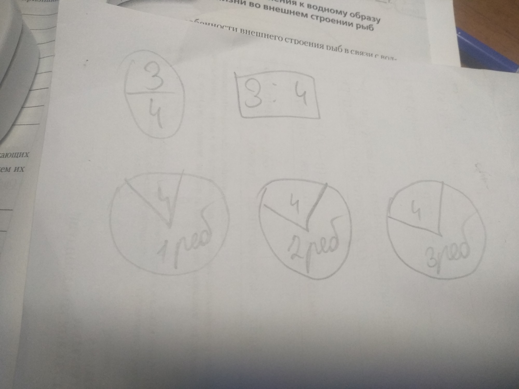 Надеюсь поймёте. Ну получилось, что каждому ребенку достанется 3/4 и вот так это на рисунке.