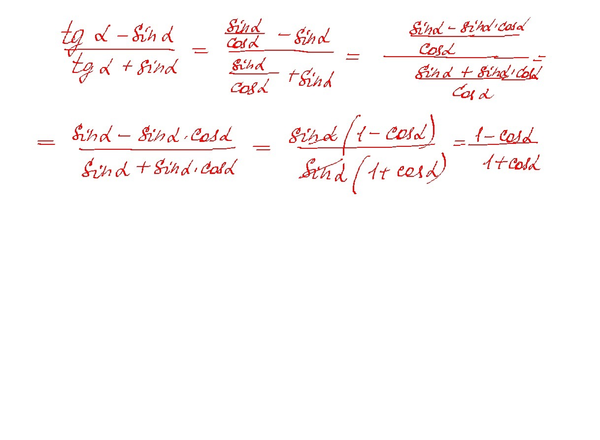 frac{tg x(1-cos x)}{tg x(1+cos x)} =frac{(1-cos x)}{(1+cos x)}=frac{2sin^2(x/2)}{2cos^2(x/2)} =tg^2(x/2)